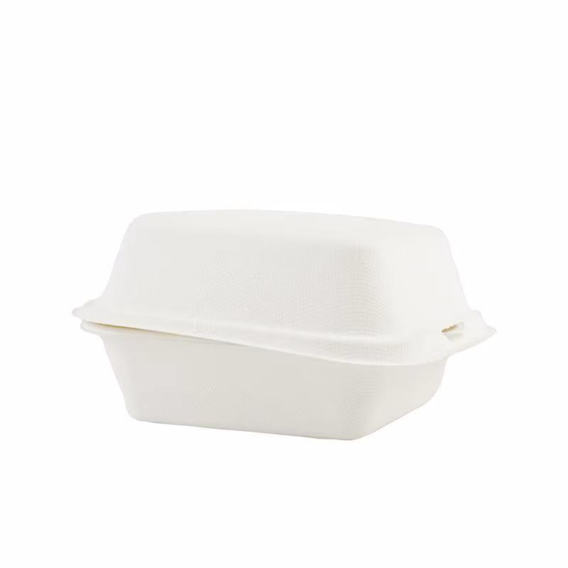 Praktyczne opakowanie typu menubox wykonane z naturalnej pulpy z trzciny cukrowej. Idealne do serwowania hamburgerów, burgerów wegetariańskich oraz dań typu street food. Wymiary 155x150x75 mm sprawiają, że świetnie sprawdza się zarówno w dostawie, jak i przy sprzedaży na wynos.